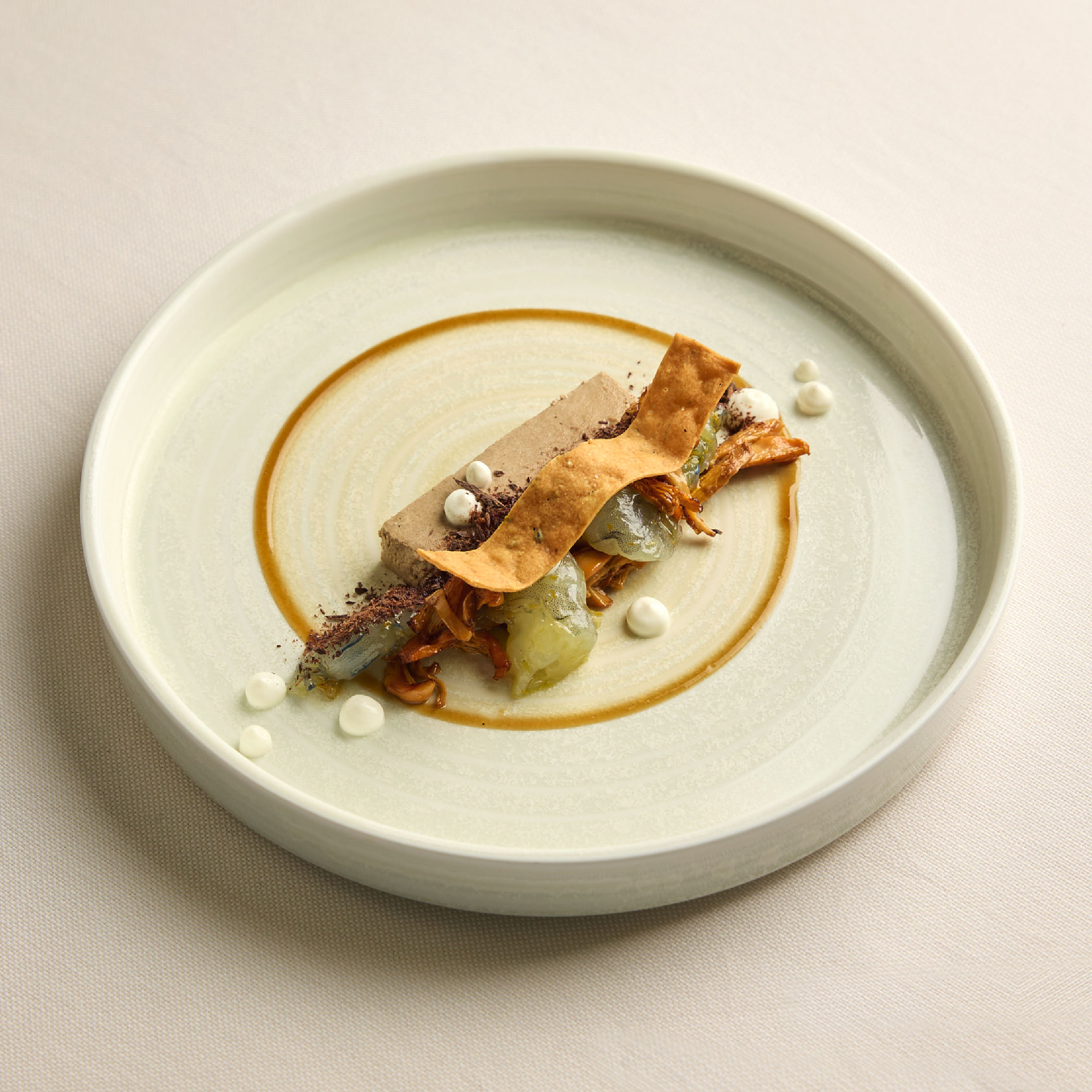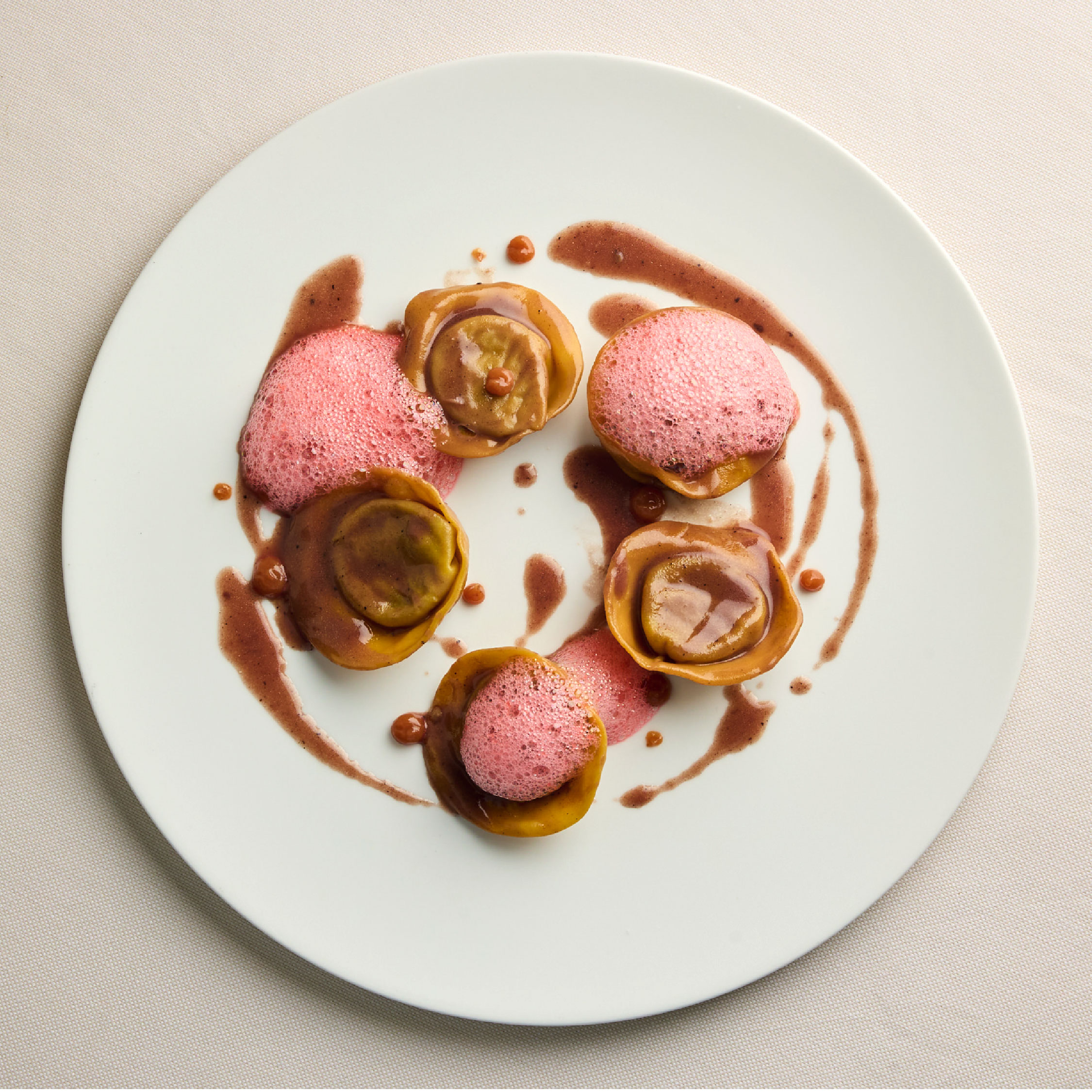 - Raviolo (raviolo ai funghi, jus al negramaro, aria di prugna)