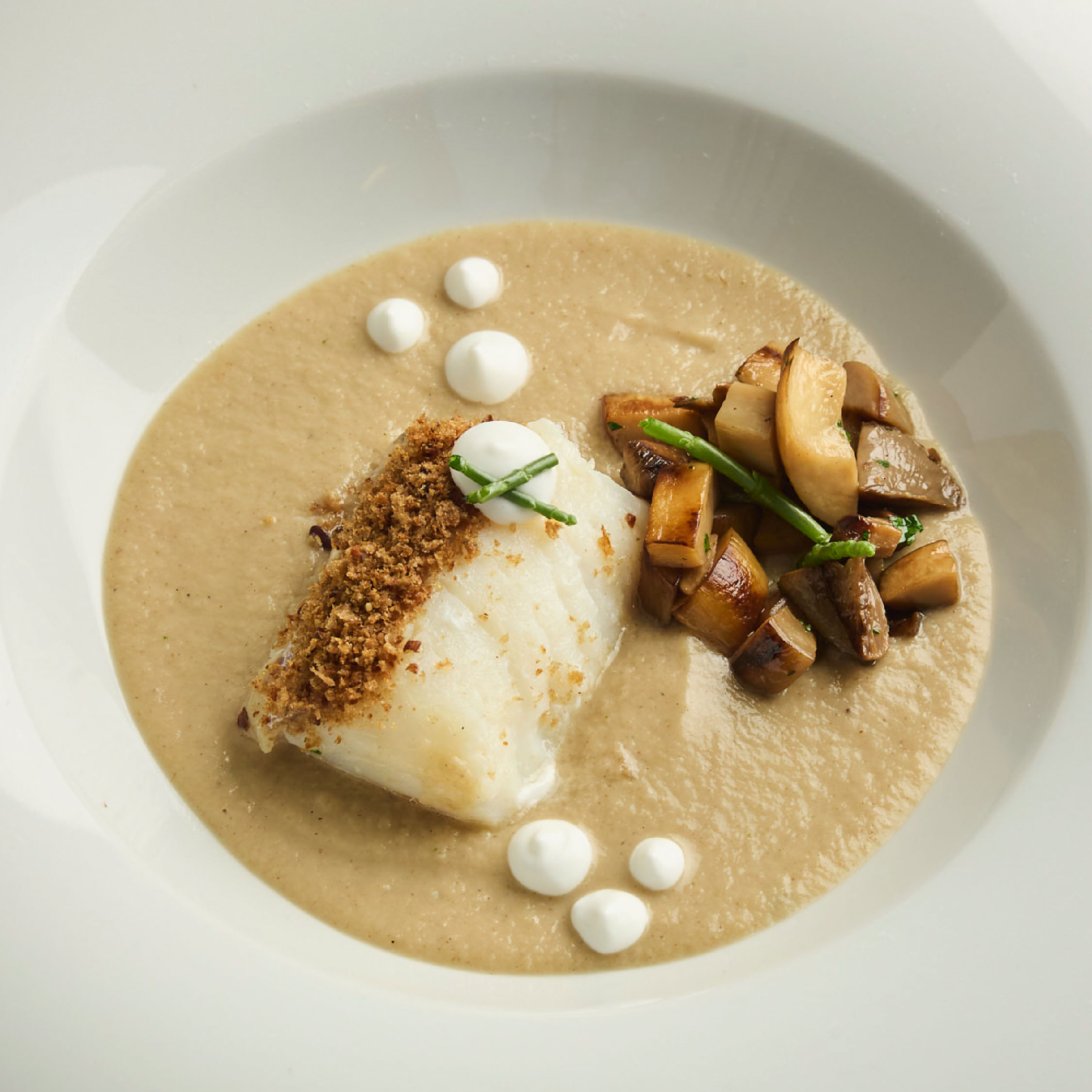 - Baccalà (zuppetta di cardoncelli, pan d’èpices, salicornia)