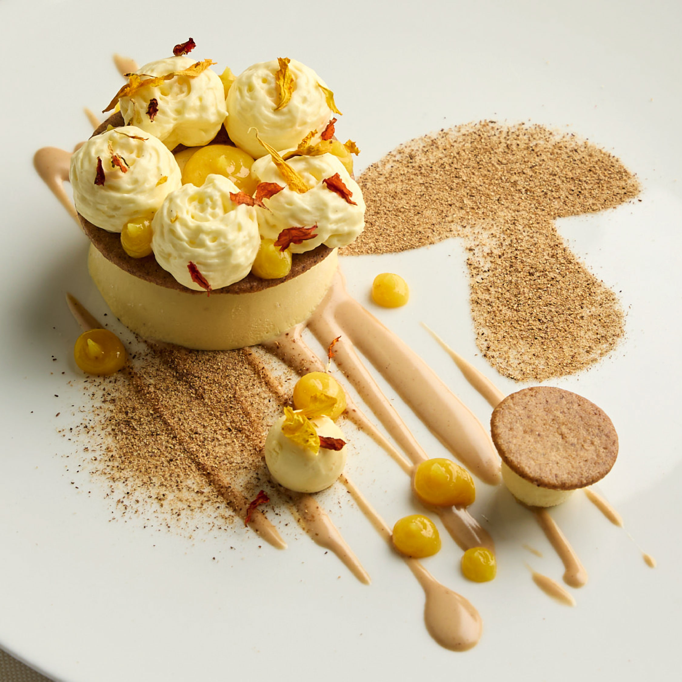 - Dolce Porcino (fava di tonka, frolla ai porcini, agrumi, mascarpone).